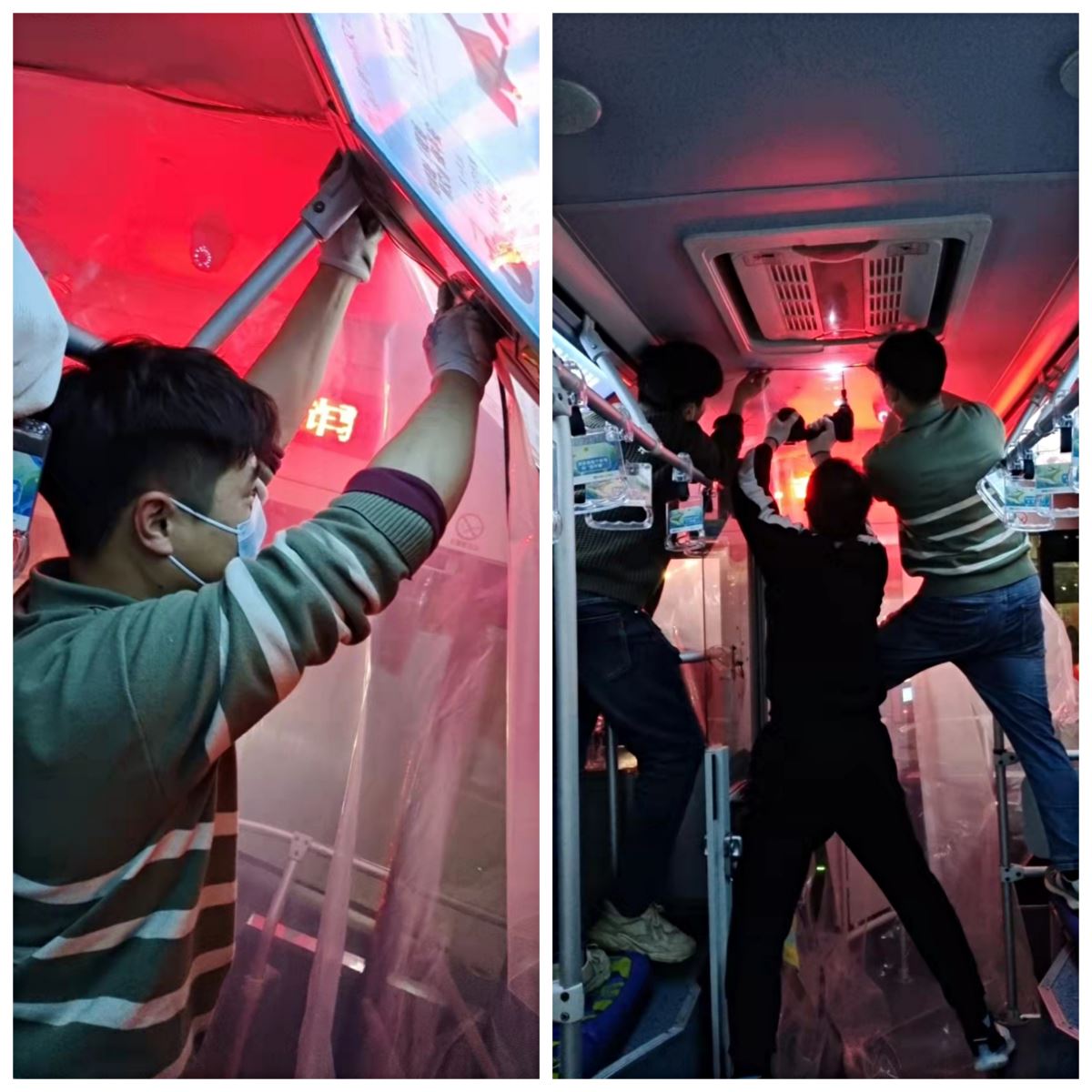 黨員先行,公交集團機務技術事業部連夜為疫情轉運車輛安裝防護膜