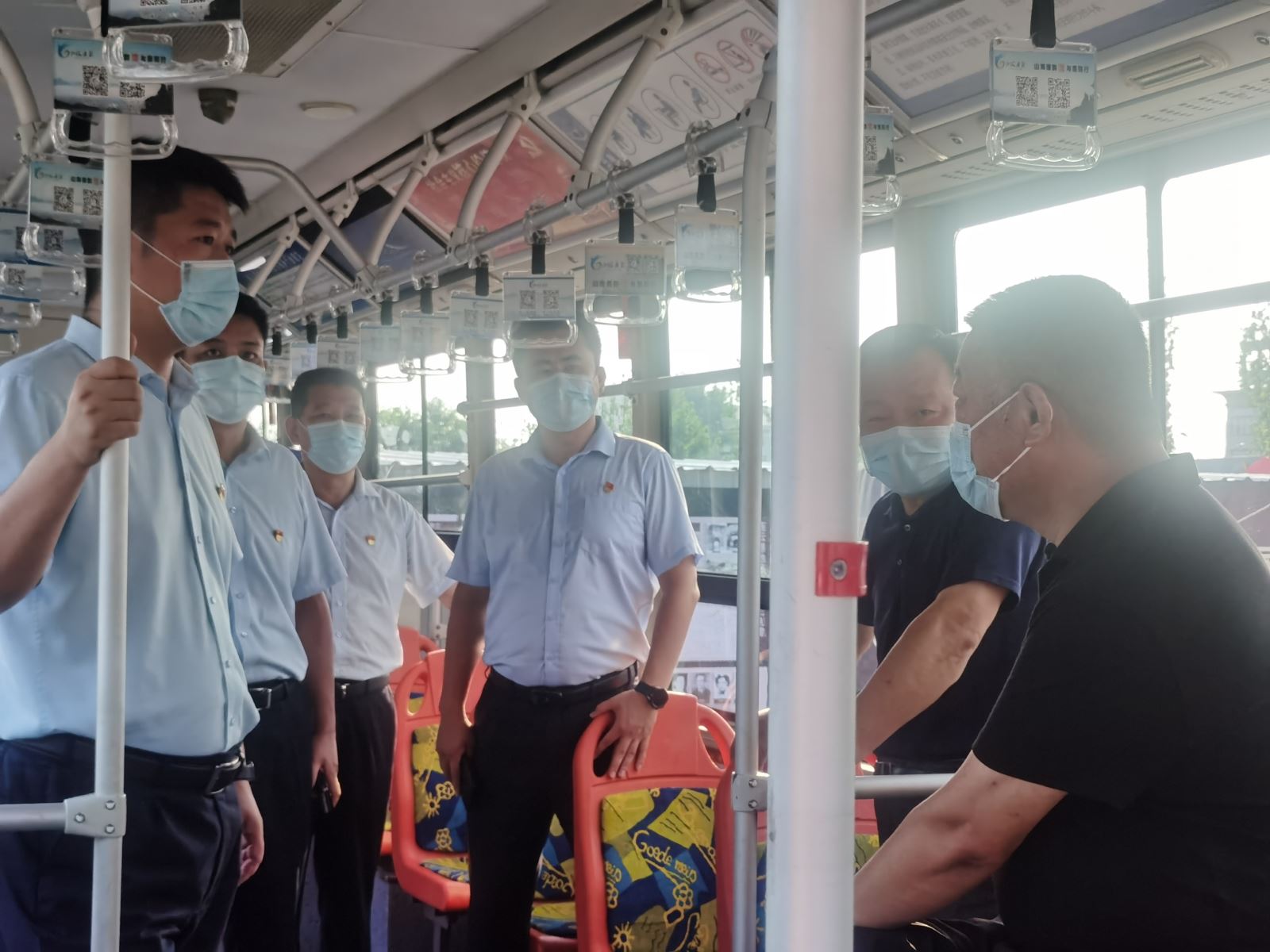 調研中,張海組長一行來到公交集團財校場站進行實地了解和查看,首先聽取王學兵對公交廉潔文化建設工作開展情況和今后工作思路的介紹,接著參觀了公交15路、19路廉政文化示范車及“中共黨史文化墻”。示范車以“山海廉韻·與廉同行”為主題,車身外運用連云港山與海的結合,寓意廉潔文化建設如同山一樣厚重、海一樣廣闊,彰顯港城廉政建設的獨有特點。車廂內主要利用多媒體設備、拉手、看板、座椅等,多方位多角度的展現警句格言、廉政漫畫、本地清官故事等人文和廉潔元素,讓廉潔文化建設走進市民乘客身邊,推進新時代黨風廉政建設和廉潔文化建設工作,張海組長對公交集團廉潔文化建設工作給予了肯定。