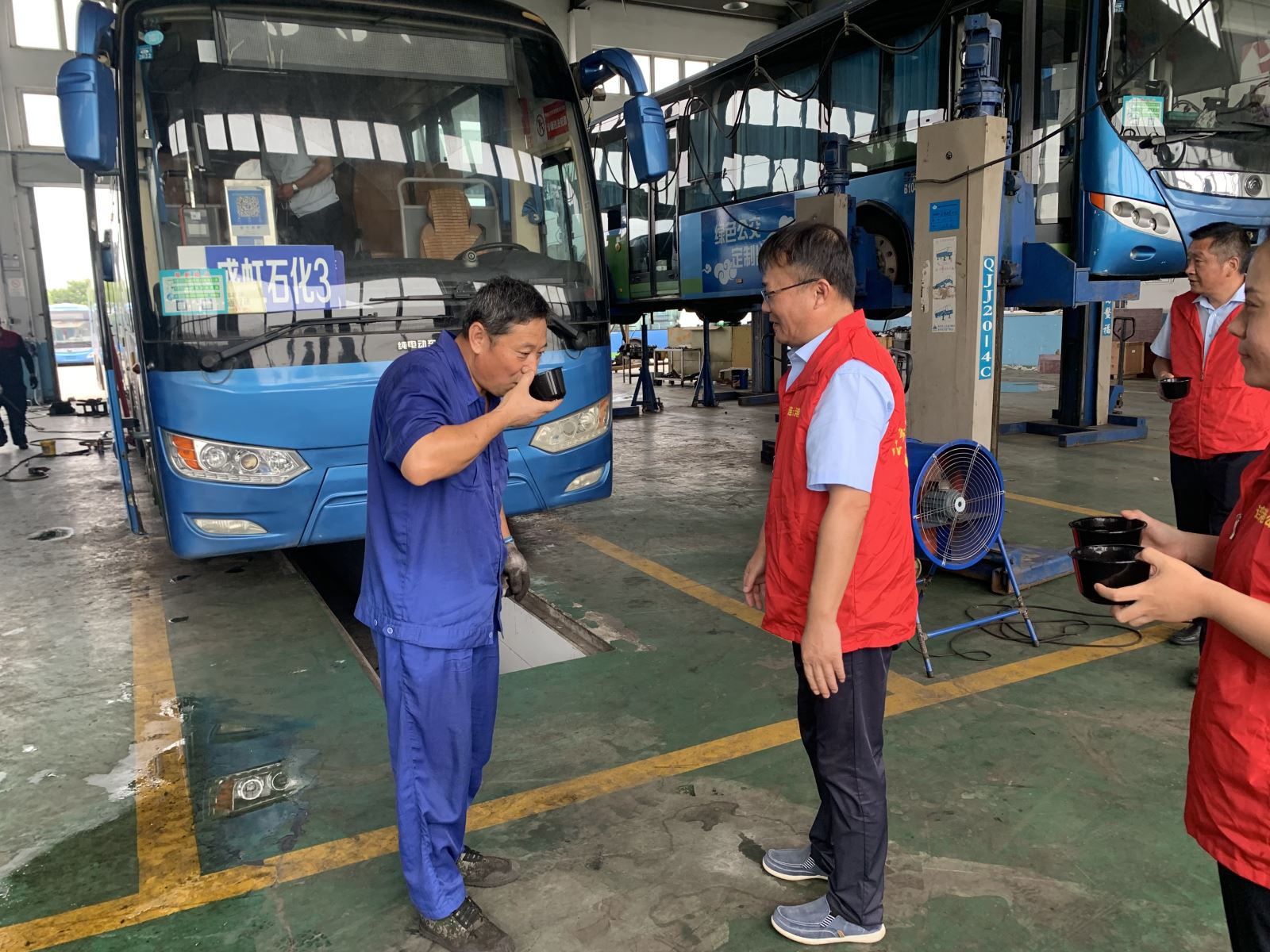 一大早,黨員志愿者們就開始忙活著煮綠豆湯,為了保證綠豆湯酥軟入味,一大鍋綠豆湯熬制了整整兩個多小時。11點,支部書記許增磊同志和副經(jīng)理蔣衛(wèi)新同志將煮好的綠豆湯分發(fā)給大浦分廠所有修理工,并為他們講解降溫知識,感謝他們無懼酷暑,盡心盡責(zé)地做好運營車輛后勤保障工作。并叮囑他們在做好本職工作的同時一定要注意防暑降溫,關(guān)切詢問他們在工作中遇到什么困難,表示盡最大努力做好協(xié)調(diào),幫助解決工作中的阻力。
