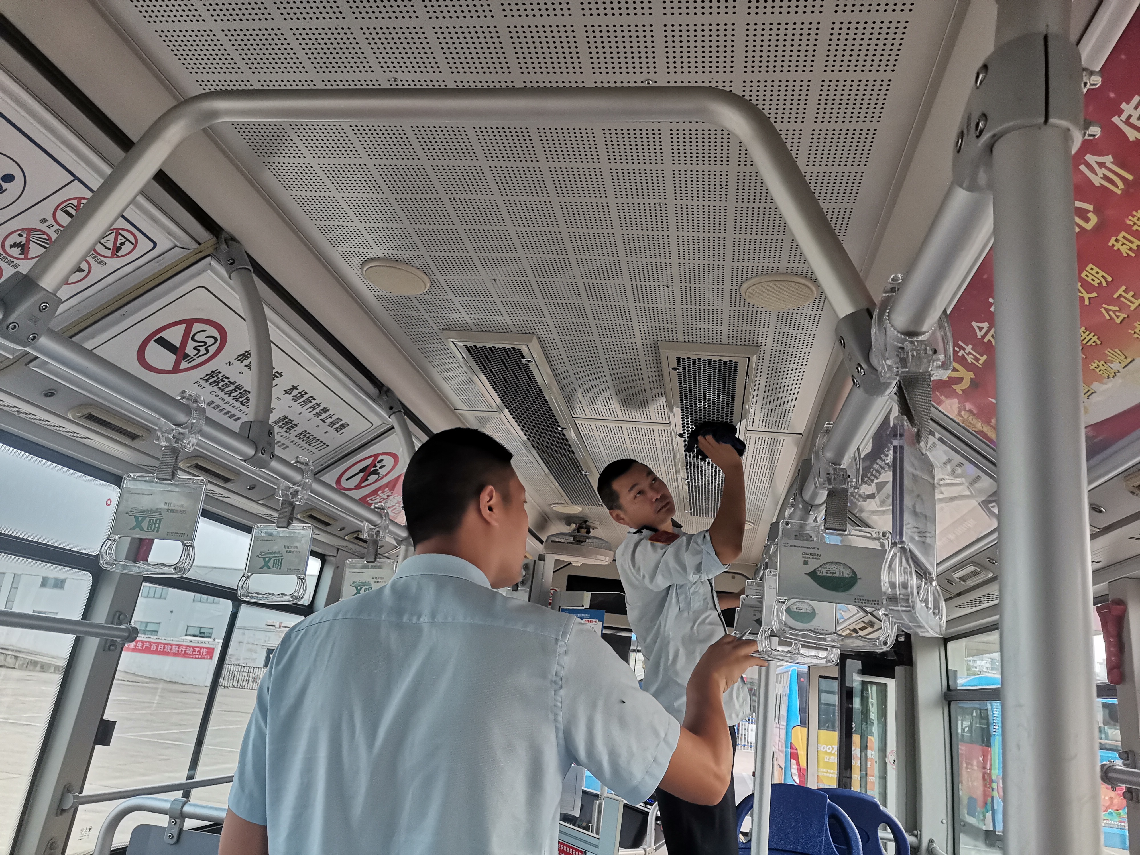 為扎實開展此次創文大排查大整治活動,首先,公司召開專題會議,按照線路、場站責任人,對照創文標準作專門要求。其次,各責任人依據創文標準進行逐車逐項進行全面排查。排查中,發現部分車輛拉手、風扇、空調出風口較臟,部分車輛站間牌、車身廣告存在問題,針對檢查中出現的問題,檢查人員都認真做好記錄,能及時整改的當場整改,不能及時整改的認真做好記錄并及時上報。檢查現場,駕駛員師傅、管理人員忙得熱火朝天,車輛一到站就開始打掃車廂內外衛生,徹底打掃衛生死角。