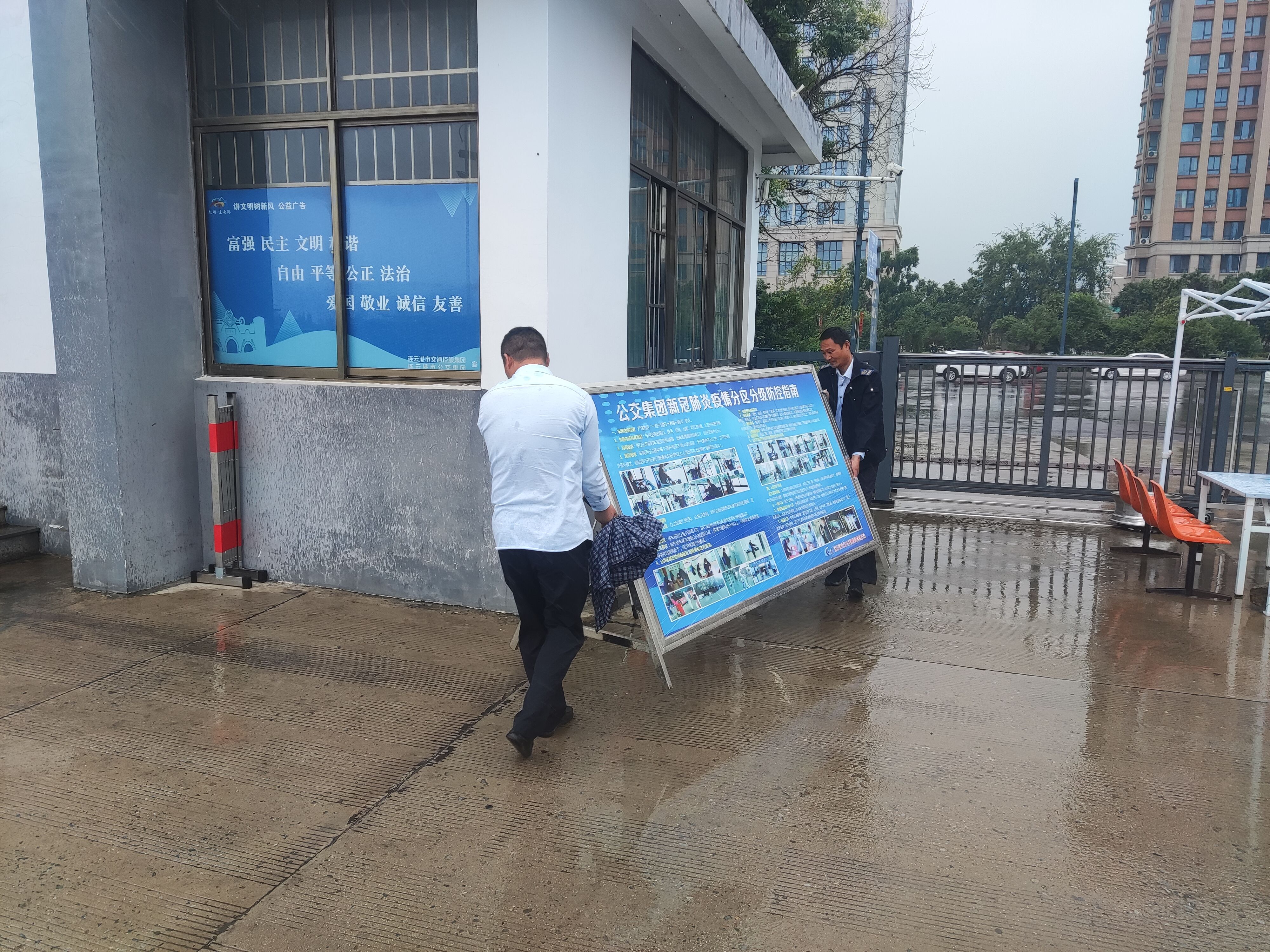 會后各分公司、科室立即落實工作,一是通過早值班、晚值班對駕駛員開展現場安全交代;二是將場站、站臺內所有標牌等移至室內,停場車輛關閉車窗;三是檢查站臺設施設備、標牌等是否有松動等現象,加固廣告燈箱及玻璃等螺絲部件;四是對排水位置進行清理,防止排水堵塞現象造成場站積水。