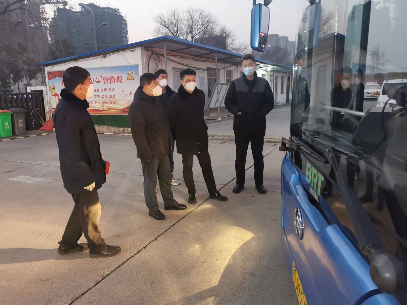 春運第一天,公交集團黨委書記、總經(jīng)理王學(xué)兵帶領(lǐng)班子成員和相關(guān)部室負責(zé)人深入基層一線,開展春運安全生產(chǎn)及疫情防控工作專項檢查。檢查組一行聽取了各事業(yè)部主要負責(zé)人就春運安全生產(chǎn)及疫情防控工作落實情況的現(xiàn)場匯報,并從參運車輛技術(shù)狀況、消防設(shè)施設(shè)備維護、參運人員的安全教育培訓(xùn)及資質(zhì)審查、春運氛圍營造、應(yīng)急物資儲備、疫情防控及應(yīng)急值守等工作落實情況開展全面檢查。