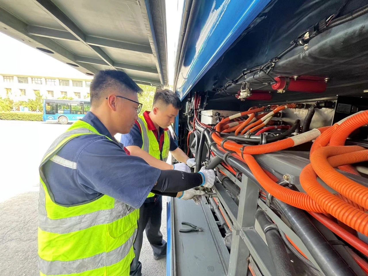 在公交車統一換成純電動車后,相較傳統維修技術更側重于電腦診斷,我們利用平時參加廠家培訓和自學,牢記大量的故障代碼,上路搶修體現的是及時響應、快速處理,就是要在眾多電路故障代碼中要準確判斷車輛故障部位,且提供快速處置的方法,這就需要日積月累的知識儲備與維修經驗。作為90后的我們,在本職崗位上恪盡職守,無論是哪里出現車輛拋錨,無論車輛是哪里的故障,我們總會第一時間趕到現場,在無遮擋、條件不充足的情況下克服炎熱、寒冷的環境,鉆車底、爬高處,心里想的總是一件事,那就是把車修好。