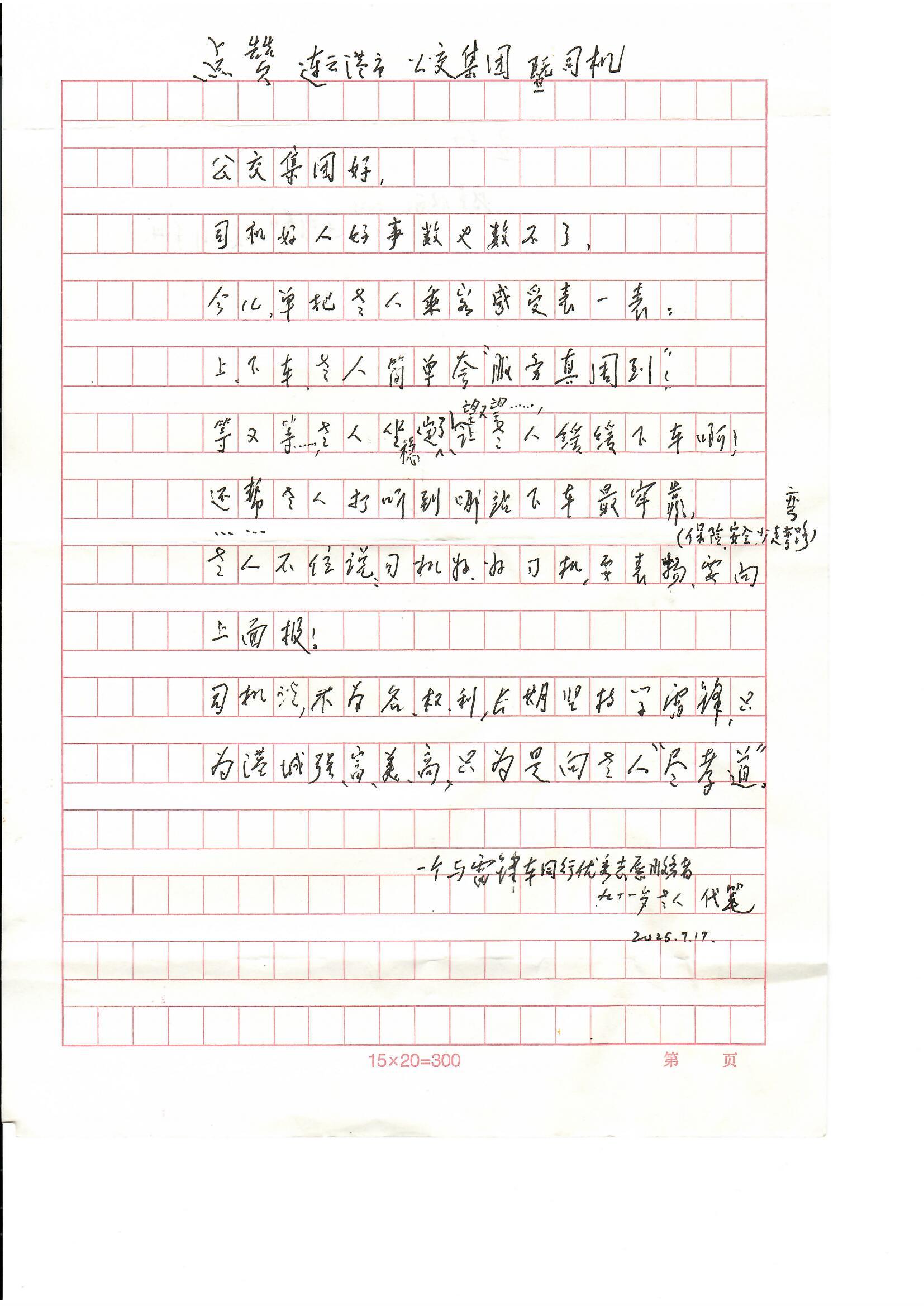 這封手寫表揚信,不僅是對連云港公交司機的肯定,更是對連云港公交集團長期以來推行“敬老愛老”服務的生動詮釋。集團始終踐行“五心五到”服務法,要求駕駛員在工作中主動幫扶老年乘客,耐心等候、細心提醒、暖心攙扶,讓公交車成為城市文明的流動窗口。