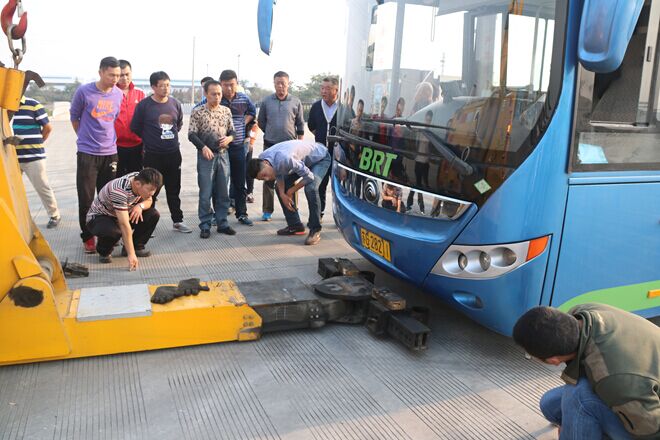 來源:安全部 作者:解學榮 為全面提高應急救援人員的身體素質和熟練使用救援設施設備、迅速有效的做好突發(fā)事件應急處置工作,最大限度的減少人員傷亡和財產損失。海通公交于2015年10月16日在大浦保養(yǎng)廠開展應急隊伍施救能力訓練,公司安全部組織基層單位分管安全領導、安全科長、安全員及應急隊伍共30余名參加訓練,按照訓練方案,由安全部經理于亮擔任此次訓練總指揮。 科目一:假設遇有冰雪路面,隊員們兩人一組,對防滑鏈按安全技術要求實地安裝。 科目二:交通事故人傷應急救援,一輛摩托車因違章與公交車相撞,駕駛員和安管人員詢問傷者情況,在確定傷情無大礙的情況下,將傷者抬上車,送往醫(yī)院治療,同時報警處置。 科目三:車輛發(fā)生故障,無法行駛,牽引車按照指令到達現(xiàn)場,應急隊員根據(jù)牽引車操作要領,對車輛底盤進行懸掛,并加以固定,要求隊伍們15分鐘內完成所有牽引懸掛流程,以最快速度恢復道路通行。 科目四:這是對隊員耐力和速度的考驗,隨著總指揮的一聲令下,隊員們分為兩組,每人雙手提起50斤沙桶往返25米跑,爭分奪秒,奮力奔跑,堪比運動會現(xiàn)場。 通過此次訓練,應急隊伍人員能夠熟練使用救援設備、提高應急意識和掌握處置要點,達到預期的訓練效果。
