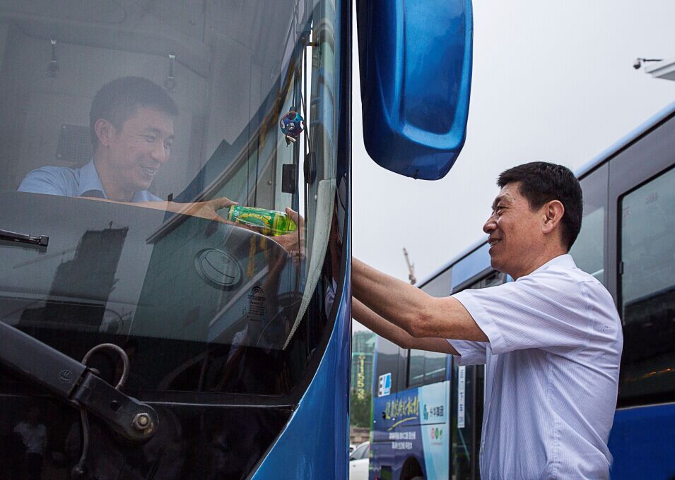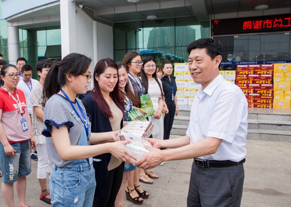 來源:黨群部 作者:雷蕾 7月15日上午,市總工會紀檢組長朱斌、勞工部部長吉文明等一行冒著高溫看望慰問堅守崗位的海通公交一線員工,他們把上級領導的關愛和夏日的清涼送到公交員工的心里。交通控股集團工會主席王中永、副主席張曉紅等參加慰問。 我市即將迎來高溫天氣,海通公交公司千名員工戰高溫、斗酷暑,奮戰運營第一線,為廣大乘客的出行付出了艱辛的努力。市總工會領導心系公交員工,他們冒著高溫來到海通公交公司,給一線公交員工送來飲料、綠豆、白糖、毛巾等,感謝公交員工在高溫酷暑條件下為廣大市民出行所作的突出貢獻,并詳細詢問了他們在高溫期間的工作和生活情況,反復囑咐他們在夏季要特別注意身體健康,牢記安全生產,做好本職工作。并叮囑隨行的企業領導,一定要把夏季“送清涼、送安全、送法律”活動落到實處,讓廣大員工真正感受到組織的關愛。