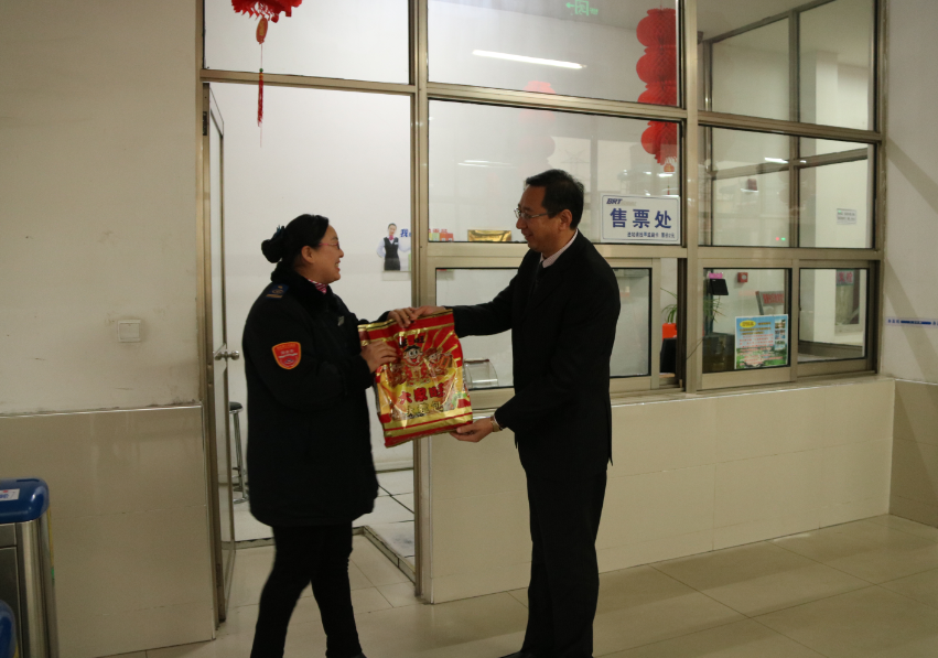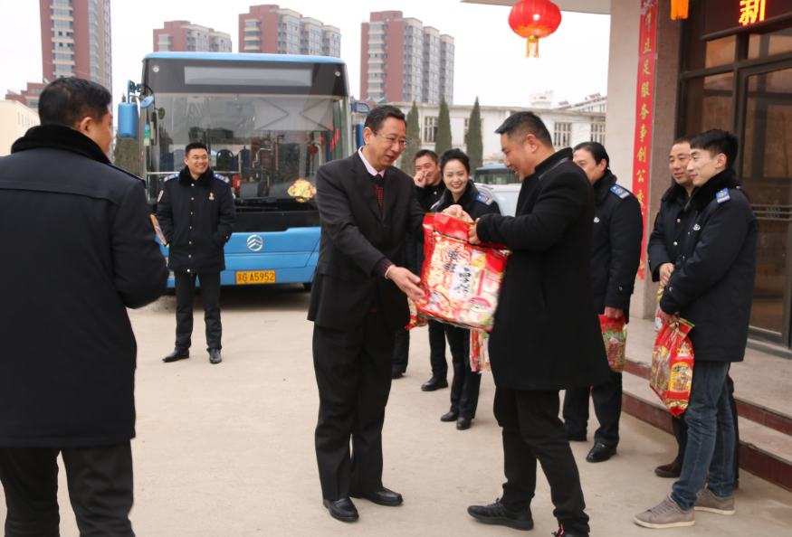 1月28日,農歷大年初一,公交集團黨委書記、總經理劉佃華帶領集團領導班子成員及機關部室主要負責人,深入各基層單位,親切看望工作在一線的所有職工,給大家帶來新春的美好祝愿。