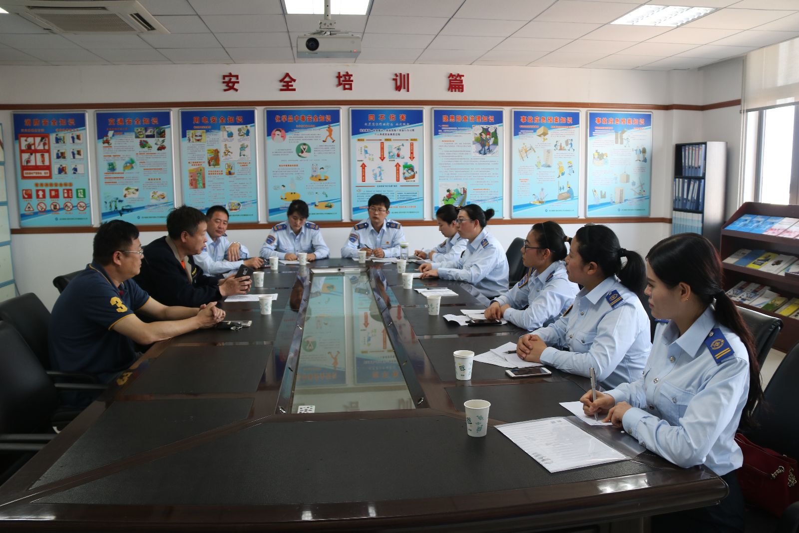 學習中,劉長志詳細介紹了東聯(lián)公司安全合格班組在創(chuàng)建過程中的經(jīng)驗做法;隨后,學習小組一行實地參觀了東聯(lián)公司機械一隊、二隊班組安全園地、班組獎懲、目標量化、特種作業(yè)人員管理、事故隱患排查治理等創(chuàng)建臺賬;現(xiàn)場組員們還對存在的疑問求知若渴的交流、追問,不愿遺漏每個需掌握的知識點,歸來時筆記本記錄的滿是收獲和感悟。