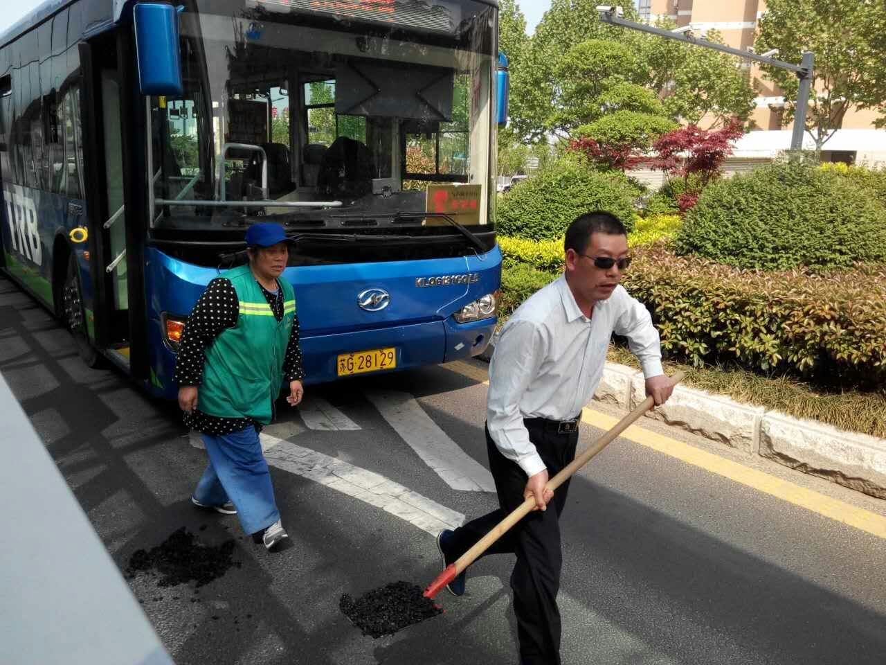 10月6日,海州市民王先生給蒼梧晚報新聞熱線打電話,點名表揚BRT公交車駕駛員葛二林,說:“真是讓人感動,BRT駕駛員為了讓大家更安全更舒適地乘坐車輛,拎著鐵桶修補路面。”葛二林是個公交車老司機,多年的工作讓他對交通安全有種本能的關注。每天在BRT一號線上來來回回,葛二林發現,宋跳站附近的公交車道上,不知什么時候被壓出了一個個大小共有12個,最深的地方足有近20厘米深。次次經過都要“被坑”,乘客們抱怨,他也心疼自己的公交車,尤其擔心路面塌陷帶來的交通隱患。于是,他合計著一定要把坑填一填。葛二林用了近一個小時,和站務員劉雪一桶一桶的把坑填平,此善舉感動了站內的乘客和正在跑班的駕駛員,乘客紛紛拿手機拍照,駕駛員鳴笛稱贊。其實這已經不是他第一次主動修整路面了,每逢天氣炎熱,BRT專用道站臺安全門路面總會凹凸不平,一塊塊“頑疾”,影響著來往的車輛,乘客坐在車上也很不舒服,為此他特地備置了工具筐、鐵鎬、瀝青塊等家伙什,等到自己休息時,前后修整了光明小區站、自來水公司站、移動公司站、院前站、嘉瑞寶廣場站等8個站點路面。葛師傅說,路鋪平了,乘客舒坦,他開起車來也安心。“別的司機看到路鋪平了,都沖我鳴喇叭、豎大拇指!”得到大家的肯定,葛二林開心的笑了。