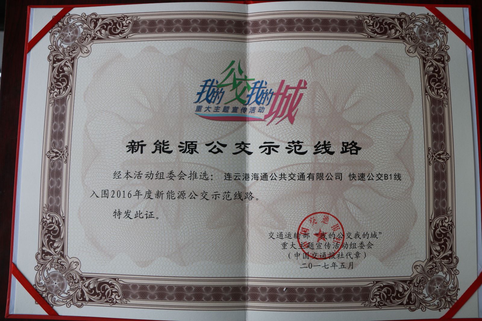 經活動組委會初選、實地調研、媒體展示、社會公示、專家組嚴格審查推選等環節,連云港市公交集團快速公交B1線榮獲“新能源公交示范線路(入圍)”,其車型榮獲“新能源公交示范車型”。