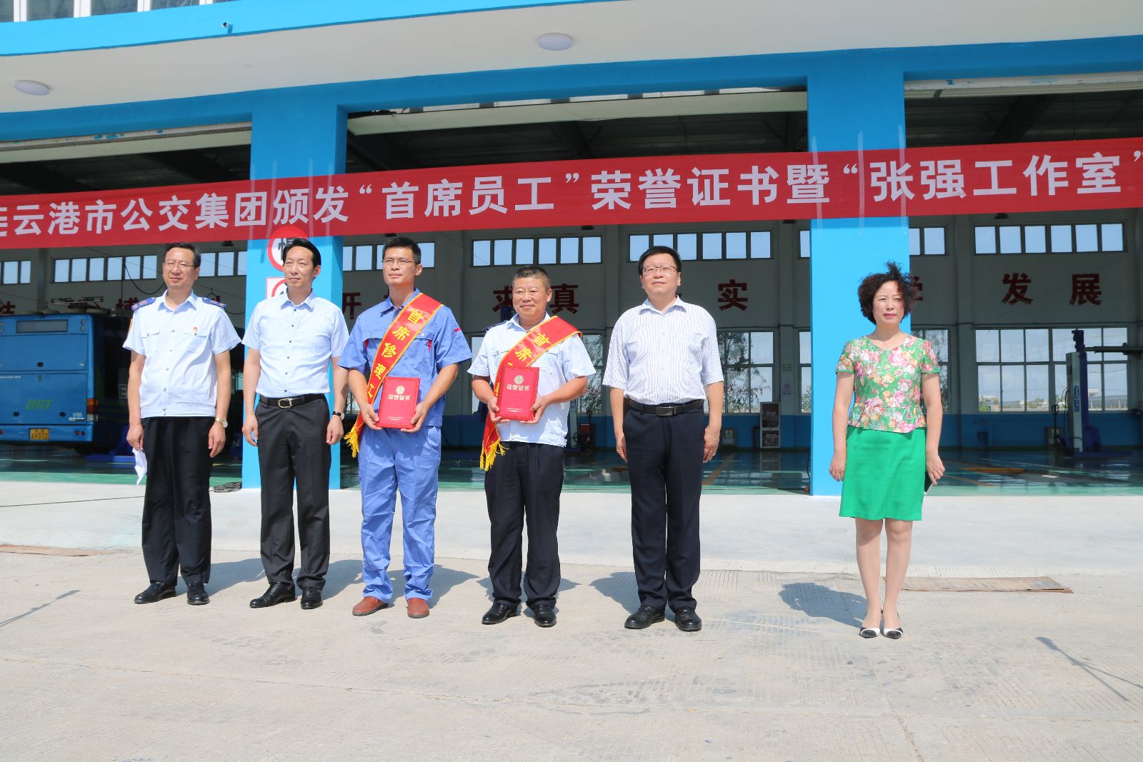 為鼓勵各單位為勞模、先進職工發(fā)揮積極作用創(chuàng)造條件,在集團營造勞動光榮,創(chuàng)造偉大的良好氛圍,經(jīng)過前期嚴(yán)格選拔和組織評選,駕駛員喬曉峰、修理工張強被授予連云港公交集團“首席員工”榮譽稱號,集團副總經(jīng)理于京濤在儀式上宣讀《關(guān)于授予喬曉峰、張強同志公交集團首屆“首席員工”的決定》、《關(guān)于命名公交集團“張強工作室”的決定》。 其次“首席修理工”張強、“首席駕駛員”喬曉峰分別上臺表態(tài)發(fā)言,交通控股集團工會主席王中永為首席員工頒發(fā)榮譽證書。