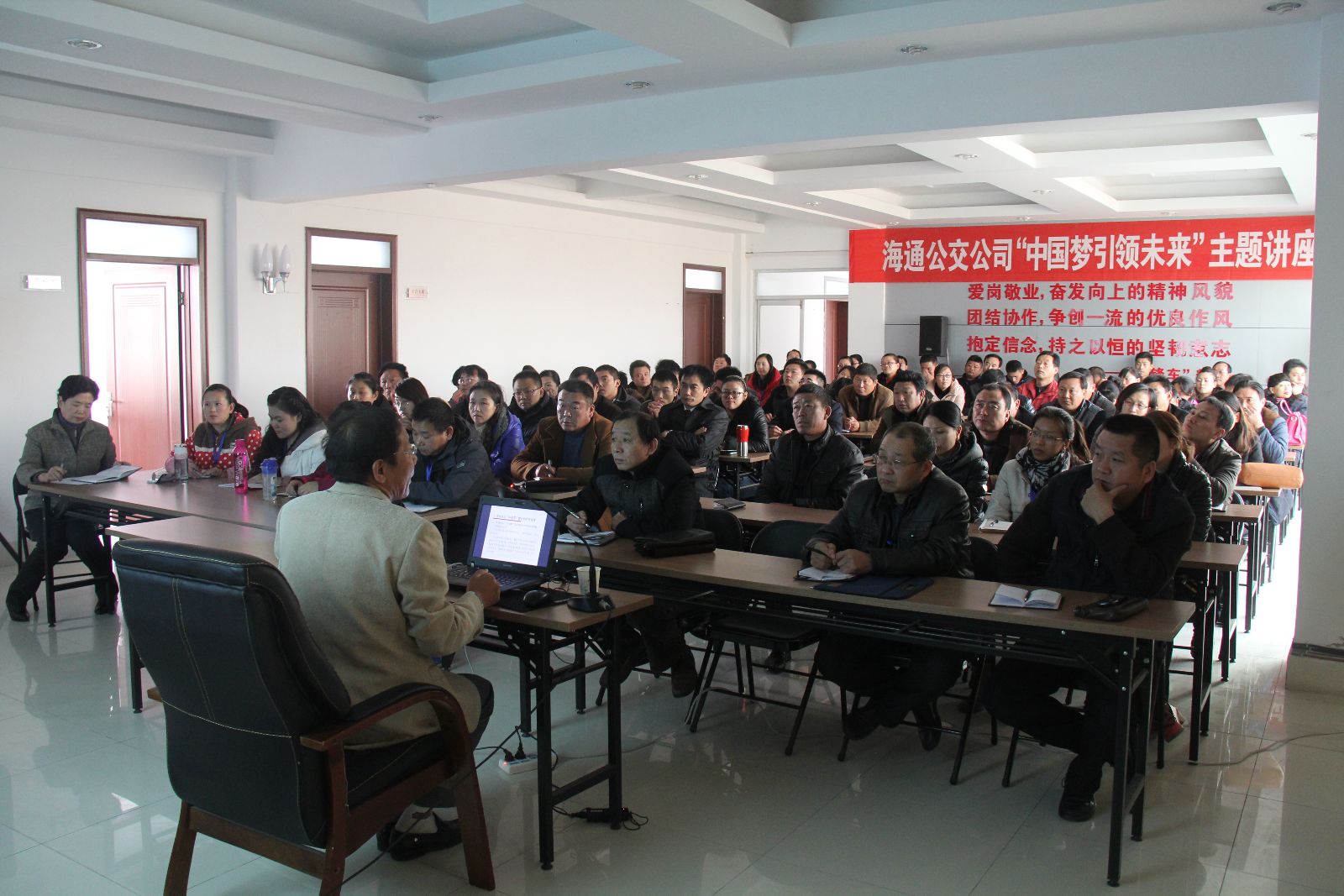 為深入學習黨的十八大精神,11月20日,海通公交“中國夢引領未來”講座開講!公司邀請市委黨校教授許繼青來海通公司授課,公司機關全體人員、基層單位黨員干部參加了培訓。