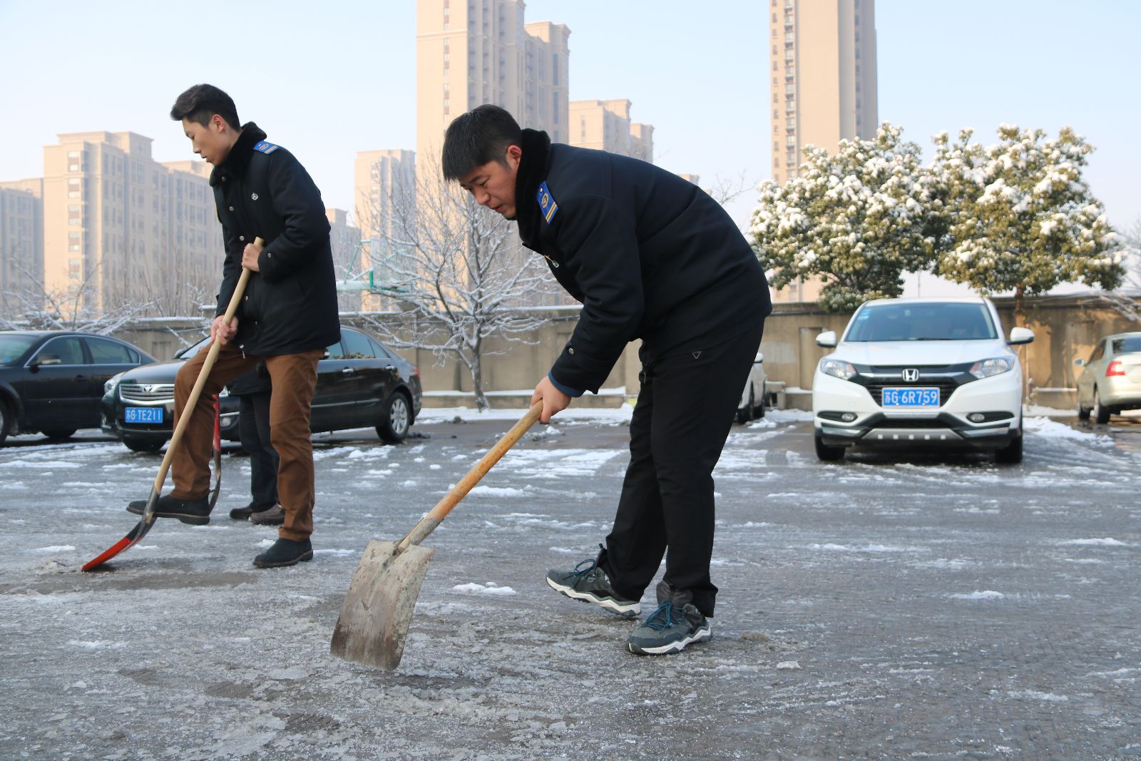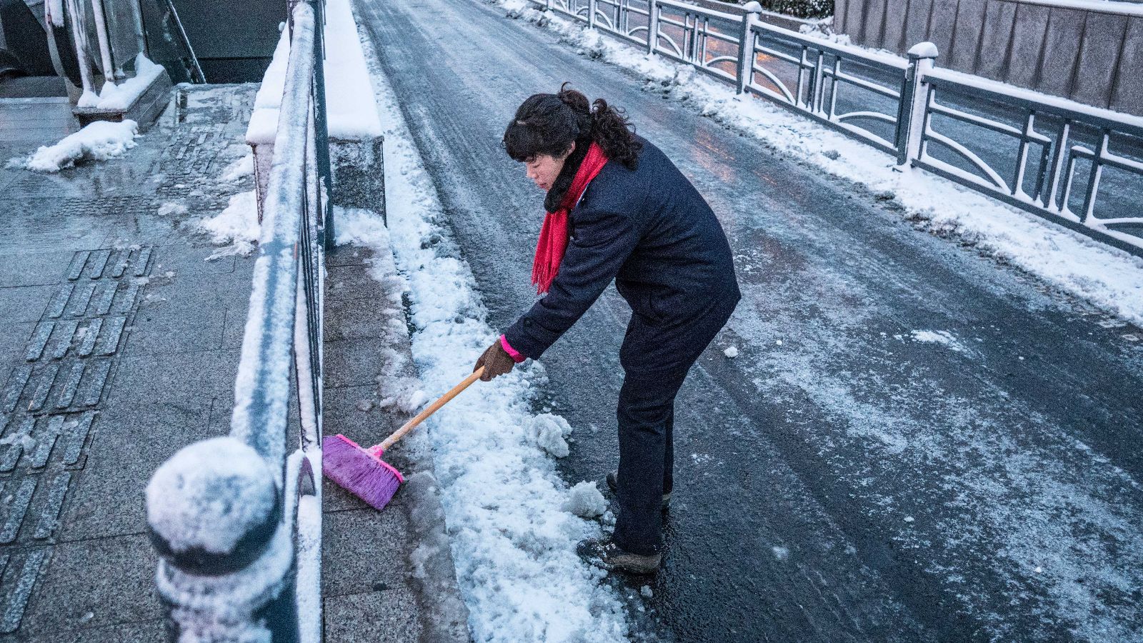 自1月4日凌晨港城飄起雪花后,連云港市公交集團已經(jīng)建立24小時值班制度,保持通訊指揮暢通,并通過微信、QQ、電話等多種方式收集各個公交線路雪情雪量和路面結(jié)冰情況做好應(yīng)急處理。今日(5日)清晨,連云港市公交集團機關(guān)單位和權(quán)屬單位全體員工針對低溫雨雪天氣深入一線,積極協(xié)助快速公交站務(wù)員撒工業(yè)鹽除冰,利用手中有的鐵锨、鏟雪鏟清掃站臺和安全門上的積雪。在大家齊心協(xié)力的幫助下,各快速公交站臺及快速公交車專用車道上的冰雪已經(jīng)清理干凈,順利迎接第一批乘客的到來,有效保障了市民的出行。