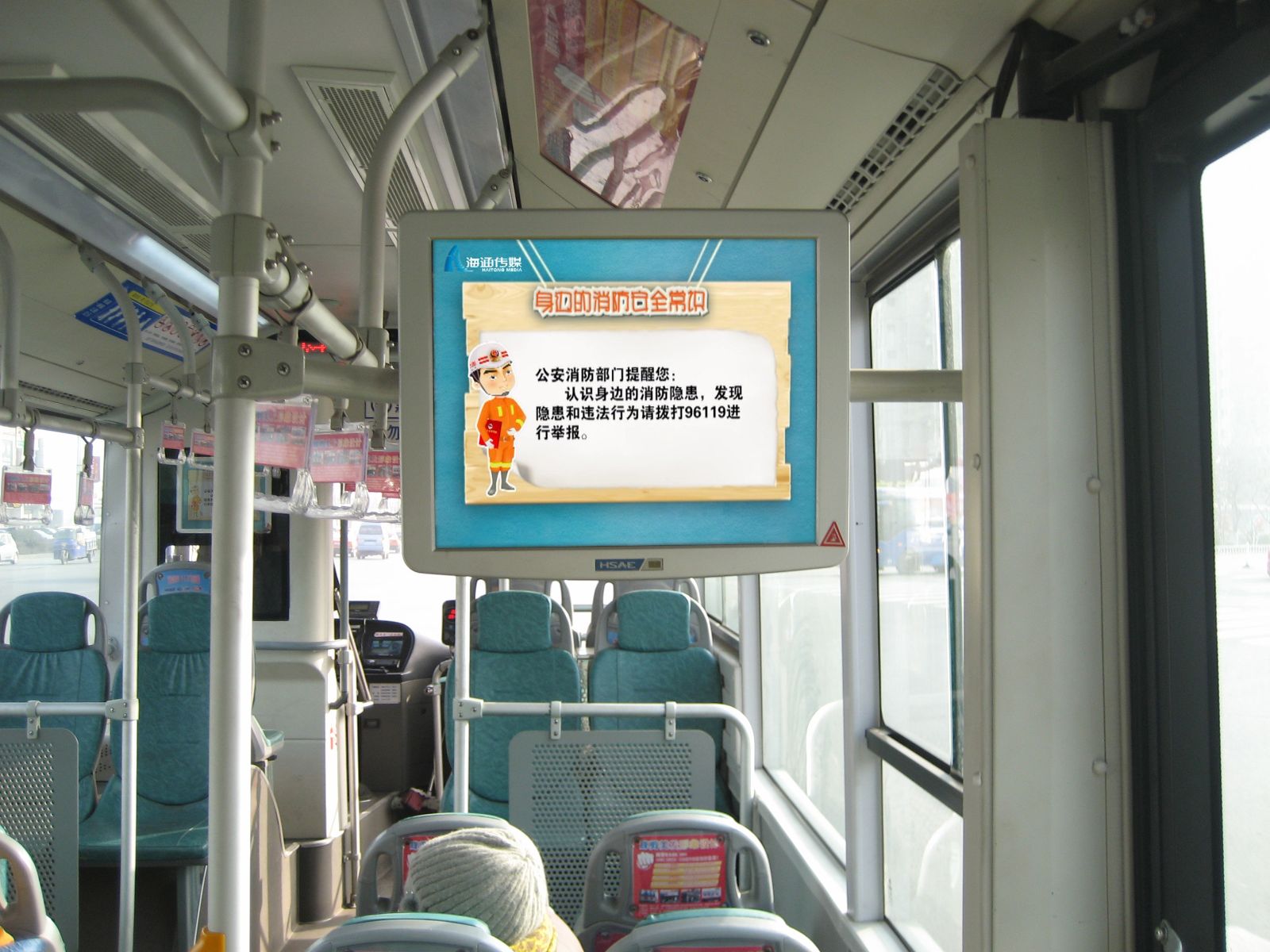 為了給廣大乘客營造一個安定、和諧的春運出行環境,確保乘客乘車安全,海通公交與連云港市公安消防支隊聯合開展消防知識宣傳活動。公司為迅速有效開展好宣傳活動,利用154臺BRT車輛、185臺常規公交車輛上的車載電視滾動播放《身邊的消防安全常識》公益片,提醒乘客禁止攜帶危險品乘車,自覺維護公共消防安全。在參加春運的616臺公交車上安裝了1000張消防知識公益宣傳卡片,以圖文的形式生動地宣傳消防安全防火知識。