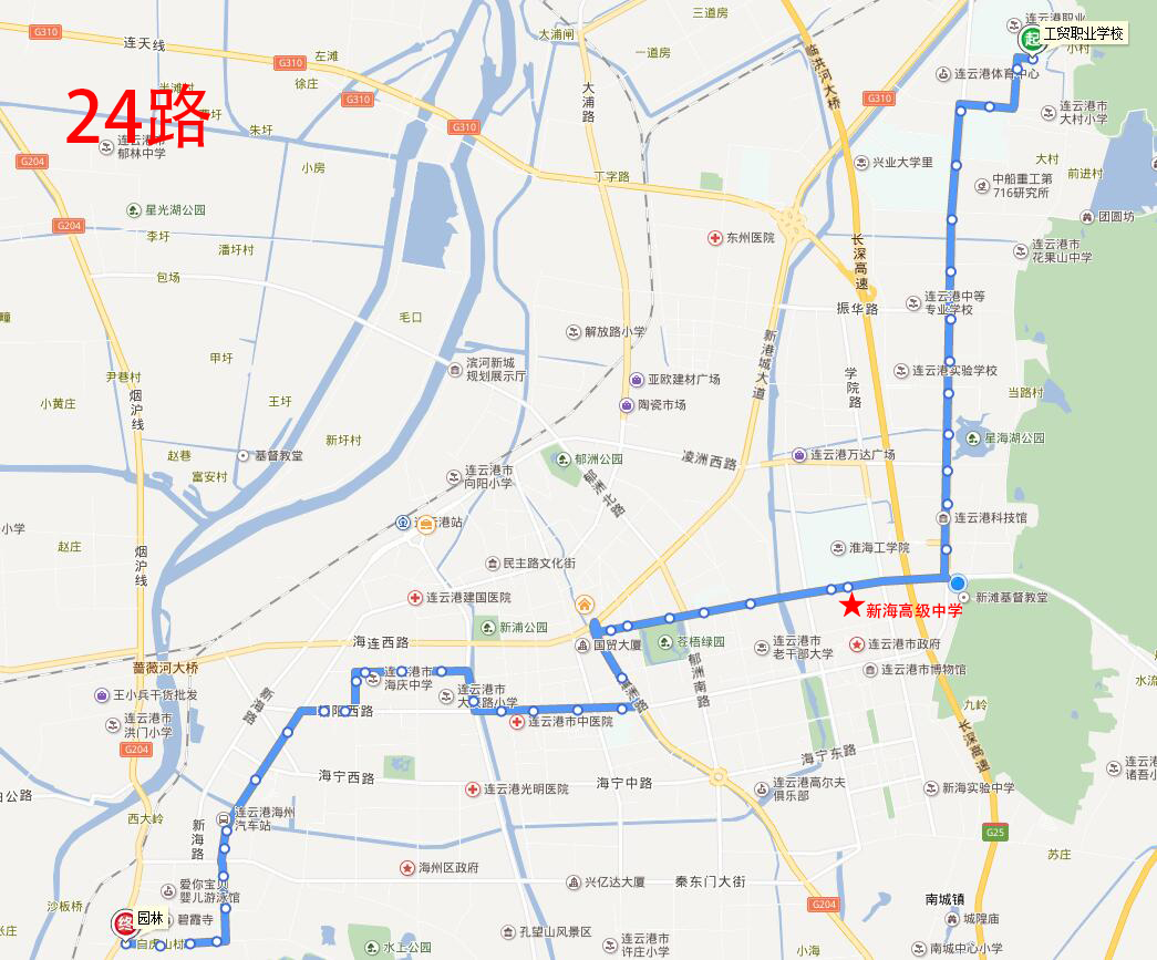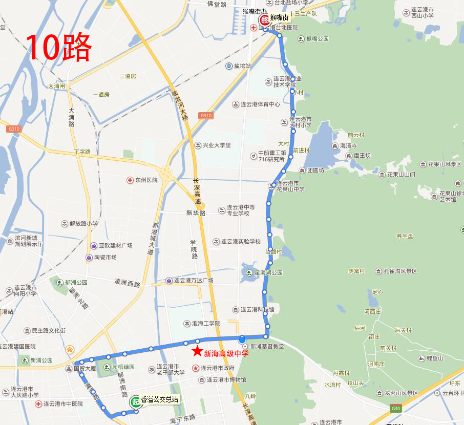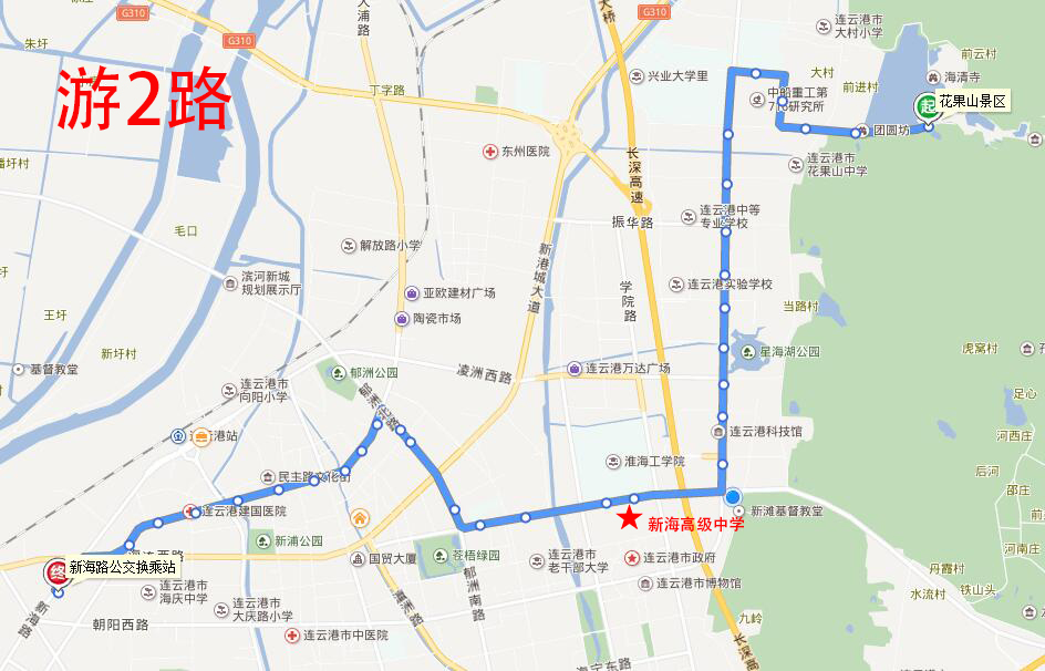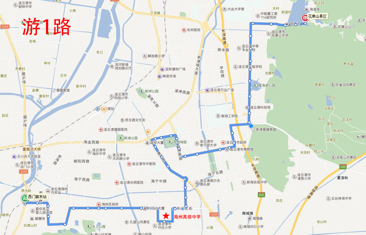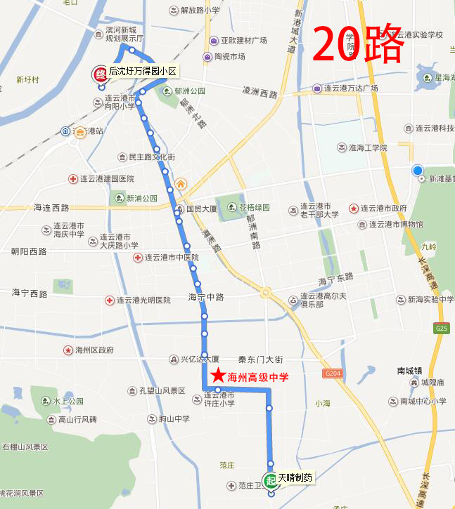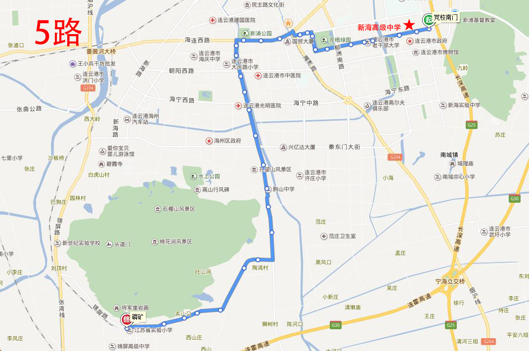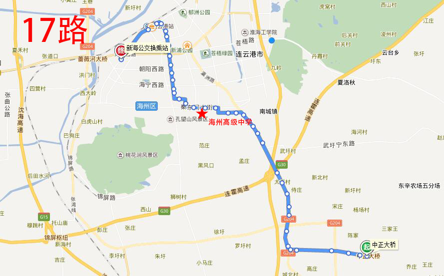 海州高級中學:地址在海州開發區青圃路1號,附近途徑公交線路有17路、20路、游1路;