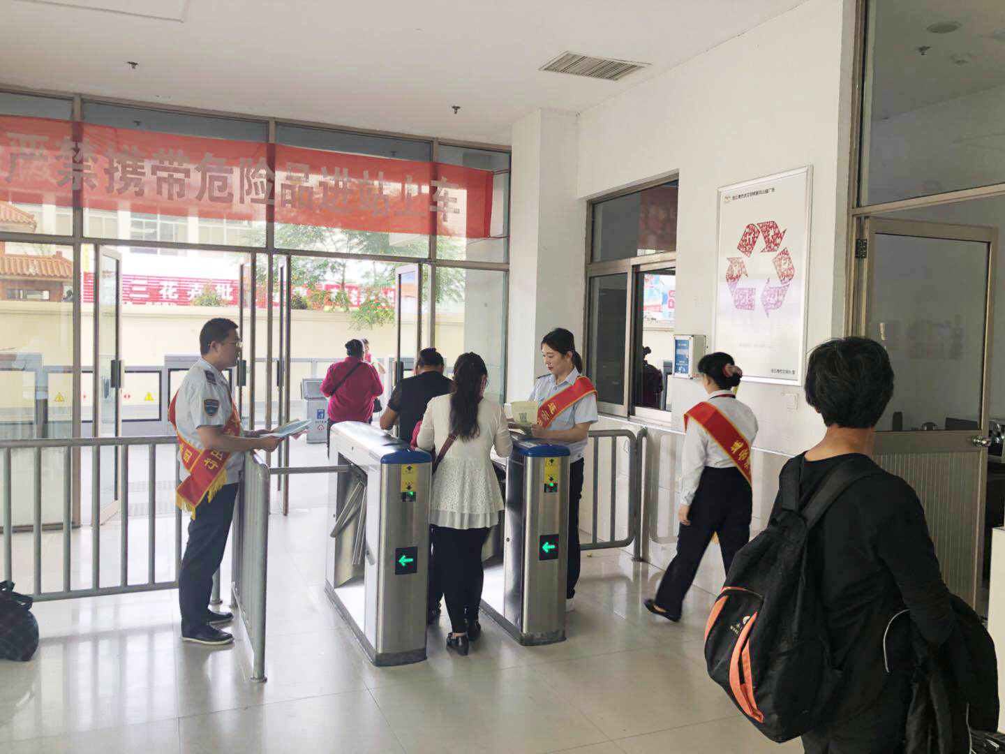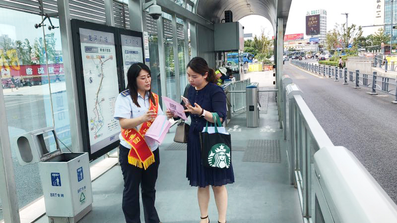 根據(jù)2018年公交出行宣傳周活動(dòng)安排,9月18日上午,公交集團(tuán)組織開展了關(guān)愛殘疾人無障礙乘車暨公交站點(diǎn)在排隊(duì)文明出行活動(dòng),開展公交車輛斑馬線禮讓行人活動(dòng),加強(qiáng)監(jiān)督考核,利用公交車載運(yùn)營(yíng)系統(tǒng),及時(shí)提醒乘客禮讓殘疾人乘車。在公交站點(diǎn)在排隊(duì)文明出行活動(dòng)中,利用海州客運(yùn)站、在海一方公園、市民廣場(chǎng)、龍河廣場(chǎng)4處BRT站臺(tái)以及嘉瑞寶廣場(chǎng)、購物中心、第一人民醫(yī)院、蘇寧廣場(chǎng)、海州批發(fā)市場(chǎng)、步行東街、龍河廣場(chǎng)、振興大廈等站8處常規(guī)公交站臺(tái),安排48名志愿者統(tǒng)一服裝、佩戴綬帶,現(xiàn)場(chǎng)發(fā)放2018年公交出行宣傳周倡議書1000余份、乘客滿意度調(diào)查表800余份。