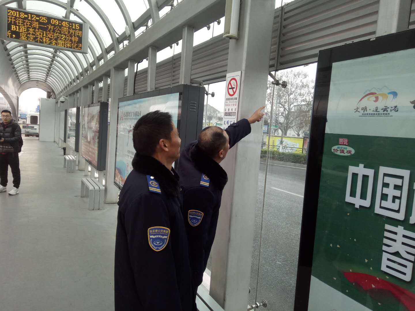 節假日,創文檢查不放松,站臺衛生,創文宣傳標識,駕駛員、站務員文明用語情況都要重重考驗