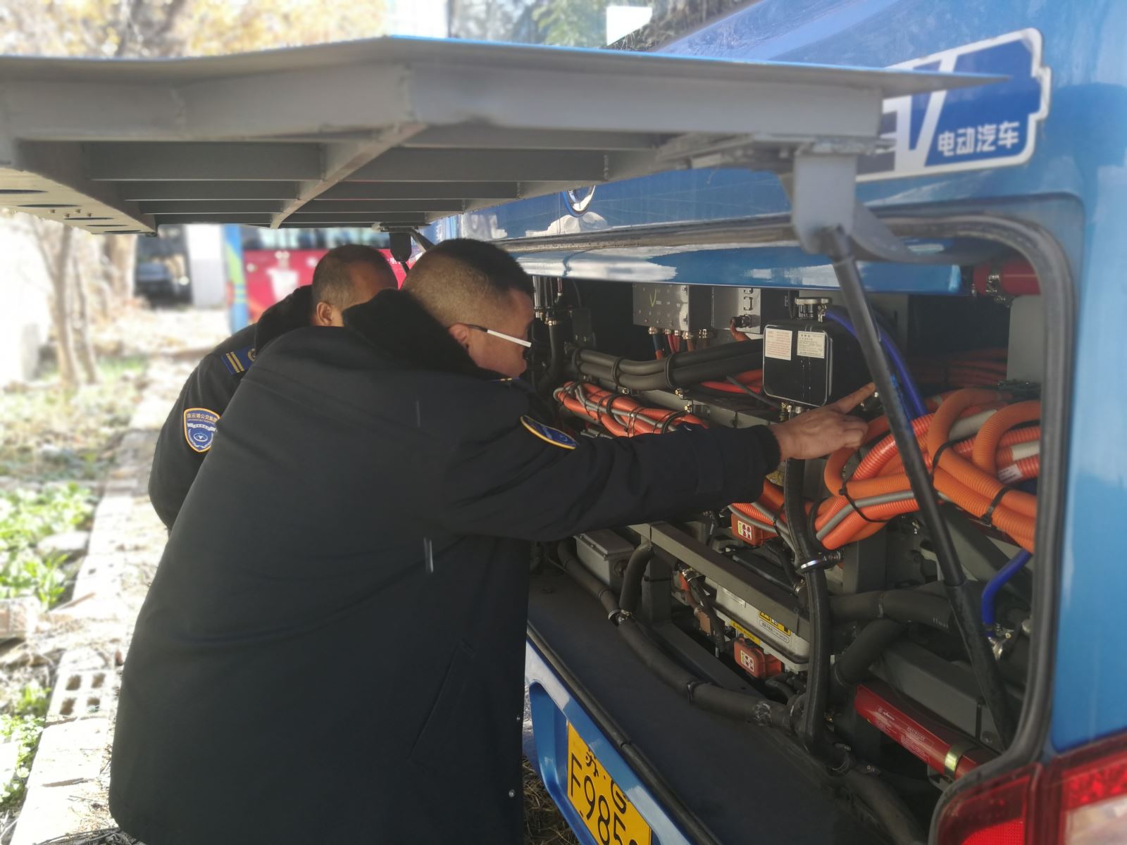 此次檢查由公交集團公交事業一部管理人員帶領安全、機務相關工作人員同時進行,檢查的主要內容為:電路、氣路、燈光、制動系統、輪胎磨損度、發動機艙、電車電瓶艙、車廂內滅火器是否有效,安全設施是否齊全等方面。
