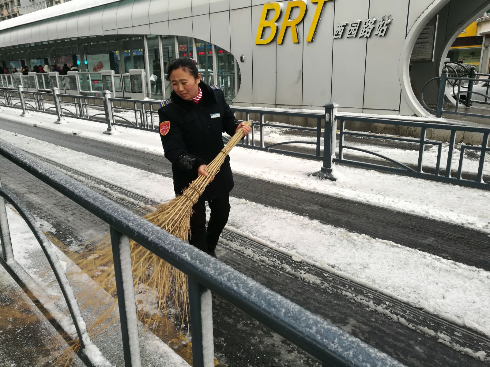 每天人來人往,BRT站臺地面有些污漬用拖把無法清理干凈,葛粉娣就利用休息時間來到站臺,在難以清除的污漬上撒上洗衣粉,用刷子刷再用水沖洗。單位發的洗衣粉用完了,葛粉娣就從家里帶來,刷子刷壞了,就自己拿錢買新的。站臺的保潔員在她的影響下,從一開始的看著葛粉娣干,到后來跟著她一起干,西園路的站務員們,在葛粉娣這種無私奉獻精神的感染下,都積極主動的清理站臺的衛生,真正做到站臺衛生無死角。