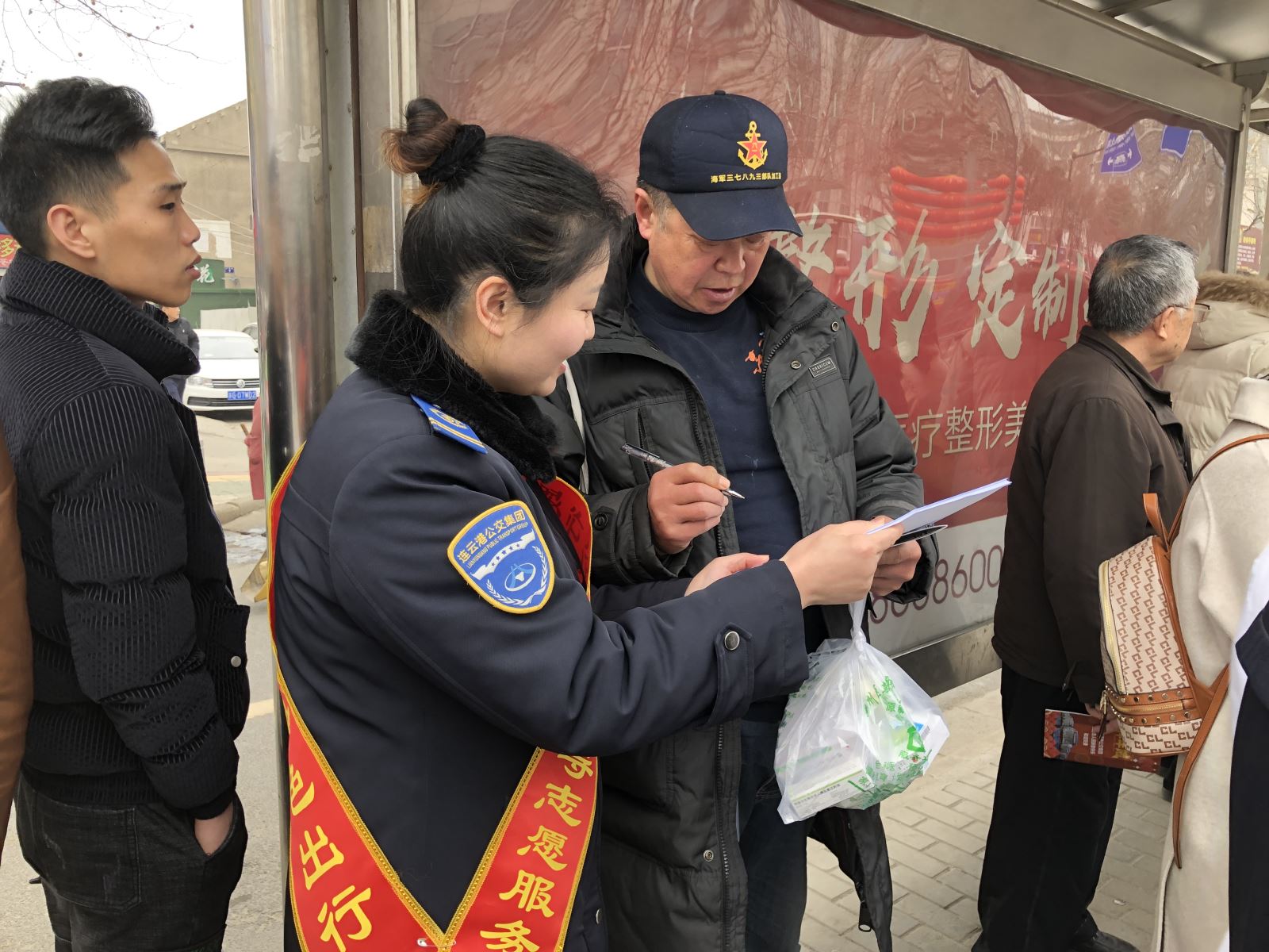 “大爺,您慢點,我扶著你上車”,“您好,你把孩子抱好,行李我替您提”,“師傅你坐20路到海寧小區下就到了”,活動中,志愿者們耐心為乘客解答,提供路線換乘信息,向乘客演示智慧港城APP查詢車輛到站信息,將公交出行融入不同乘客群體,提高乘客公交出行的環保意識。志愿者們還發放了乘客滿意度調查表,悉心聽取乘客對公交發展,線路拓展的意見和想法。一系列的站臺學雷鋒舉動,得到了乘客的高度贊揚,公交志愿者們忙碌的身影也成為了站臺一道靚麗的風景。