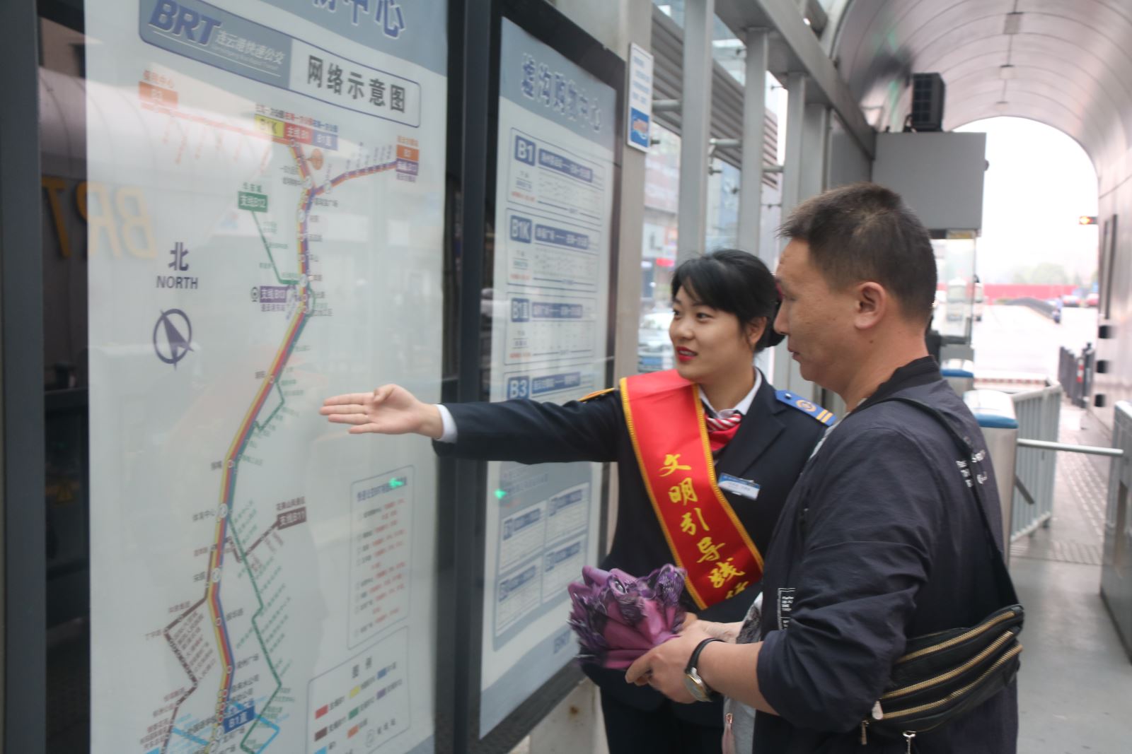 公交集團(tuán)快速公交事業(yè)部BRT一號(hào)線站務(wù)班組包括10個(gè)小組,成立于2012年10月,現(xiàn)有站務(wù)員146名,工作在BRT一號(hào)線56個(gè)站臺(tái),其中共產(chǎn)黨員1名、共青團(tuán)員19名,“與雷鋒車同行示范崗”5對(duì),2017年BRT一號(hào)線全線站臺(tái)被連云港市文明辦授予“文明示范站”。站務(wù)班組堅(jiān)持踐行社會(huì)主義核心價(jià)值觀,將雷鋒車精神發(fā)揚(yáng)到站臺(tái),自成立以來(lái),拾金不昧、樂(lè)于助人、甘于奉獻(xiàn)等好事層出不窮,據(jù)統(tǒng)計(jì)好人好事5000余件,錦旗18面。