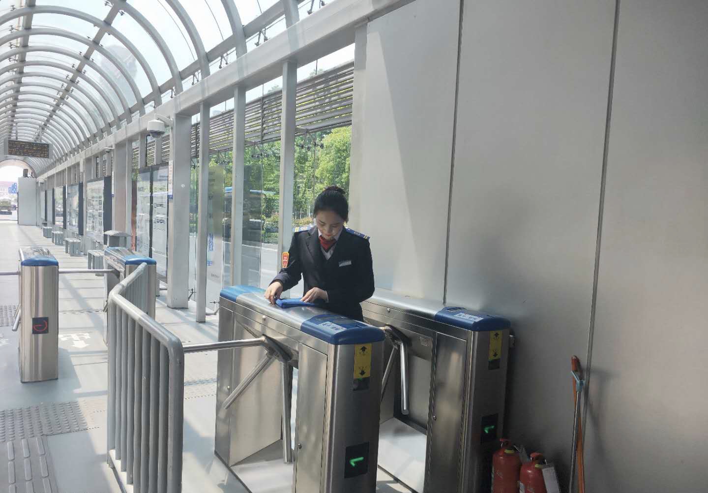 2019年春節期間,港城到處都洋溢著濃濃的節日氣氛,BRT站臺也不例外。當班期間,我看到一位腿腳不便的老奶奶手里拎了很多行李,大包小包地綁在一起,彎著腰朝著站臺走來,沒走幾步就氣喘吁吁,我趕緊走出站房,將老奶奶手里的行李接過來放在地上,耐心詢問她去往哪里,當時站臺并沒有多少人,我便將老奶奶送到了站臺里面并叮囑駕駛員提醒奶奶到站下車,老奶奶一個勁兒地對我說謝謝,寒冬里的一件小事卻因為奶奶的一句謝謝溫暖了我的心窩。