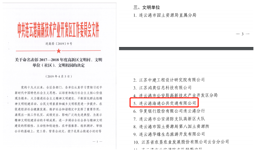 經過申報推薦、組織測試、審核公示等環節,近日,公交集團喜獲2017——2018年度“高新區文明單位”榮譽稱號。