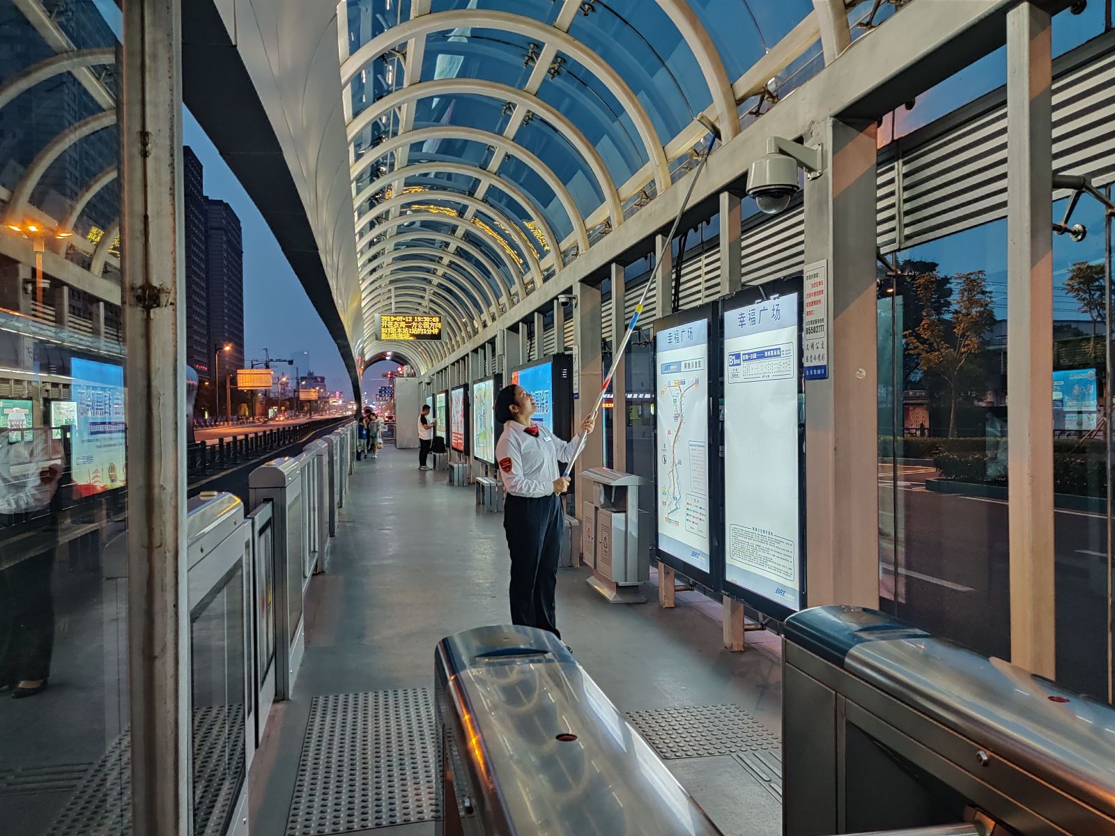 這個(gè)點(diǎn),許多人已經(jīng)吃完了晚飯,有些甚至已經(jīng)和家人散完步準(zhǔn)備洗漱入睡,我們的站務(wù)員們還堅(jiān)守在崗位上,送完常規(guī)線的最后一班乘客,她們還會(huì)迎來夜班線的第一班乘客。別看她們外表柔弱,關(guān)鍵時(shí)刻,她們也是為乘客化解過矛盾,給危在旦夕的乘客做出最快急救措施的人,她們是港城公交人里的鏗鏘玫瑰。
