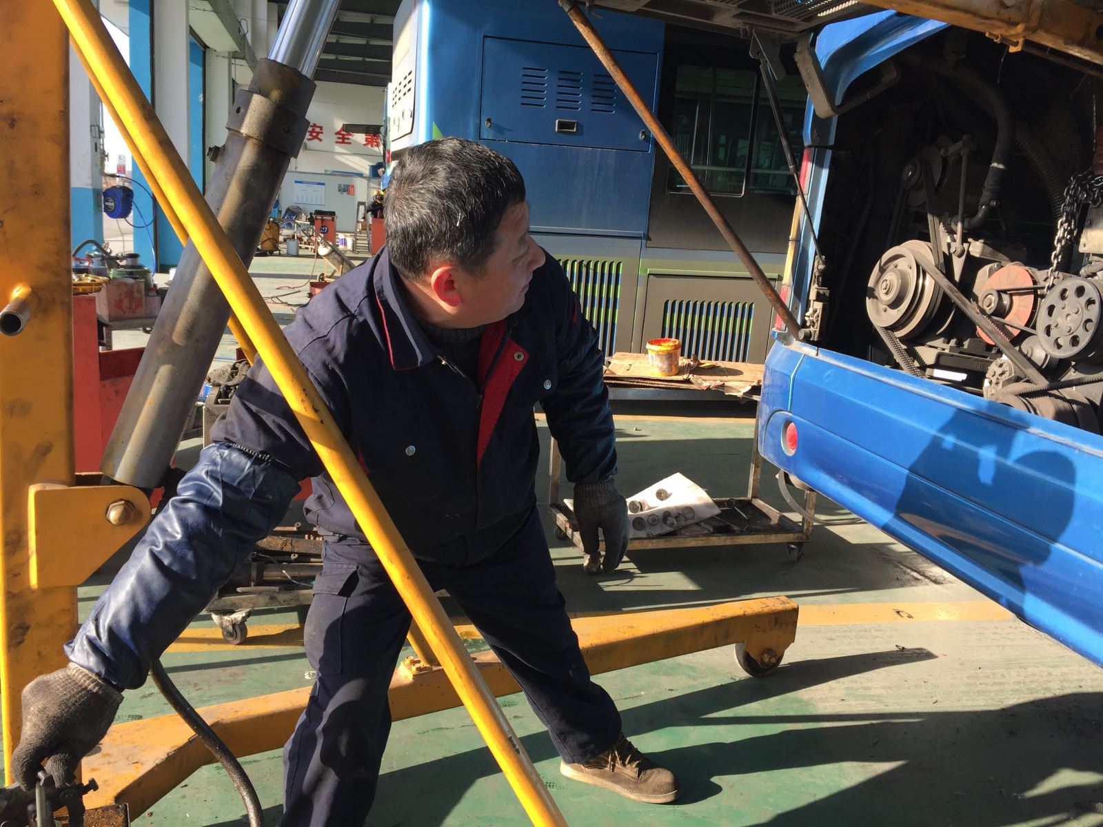 他,是默默守護公交健康的“醫生”,三伏天里,他們和公交駕駛員一起堅守崗位,為公交順利運營做好后勤保障工作。新能源車輛在高溫潮濕的夏季里最容易出現問題,車里的空調由于長時間使用,也常常出現故障。下午兩點多,正是一天中最熱的時候,蒸籠般的熱浪如影隨形,讓人無處躲藏。而在大浦分廠維修車間內,修理工張善強正在公交車里檢查空調制冷故障,汗水濕透了工作服,他只是擦了擦汗又繼續開始手頭的工作。