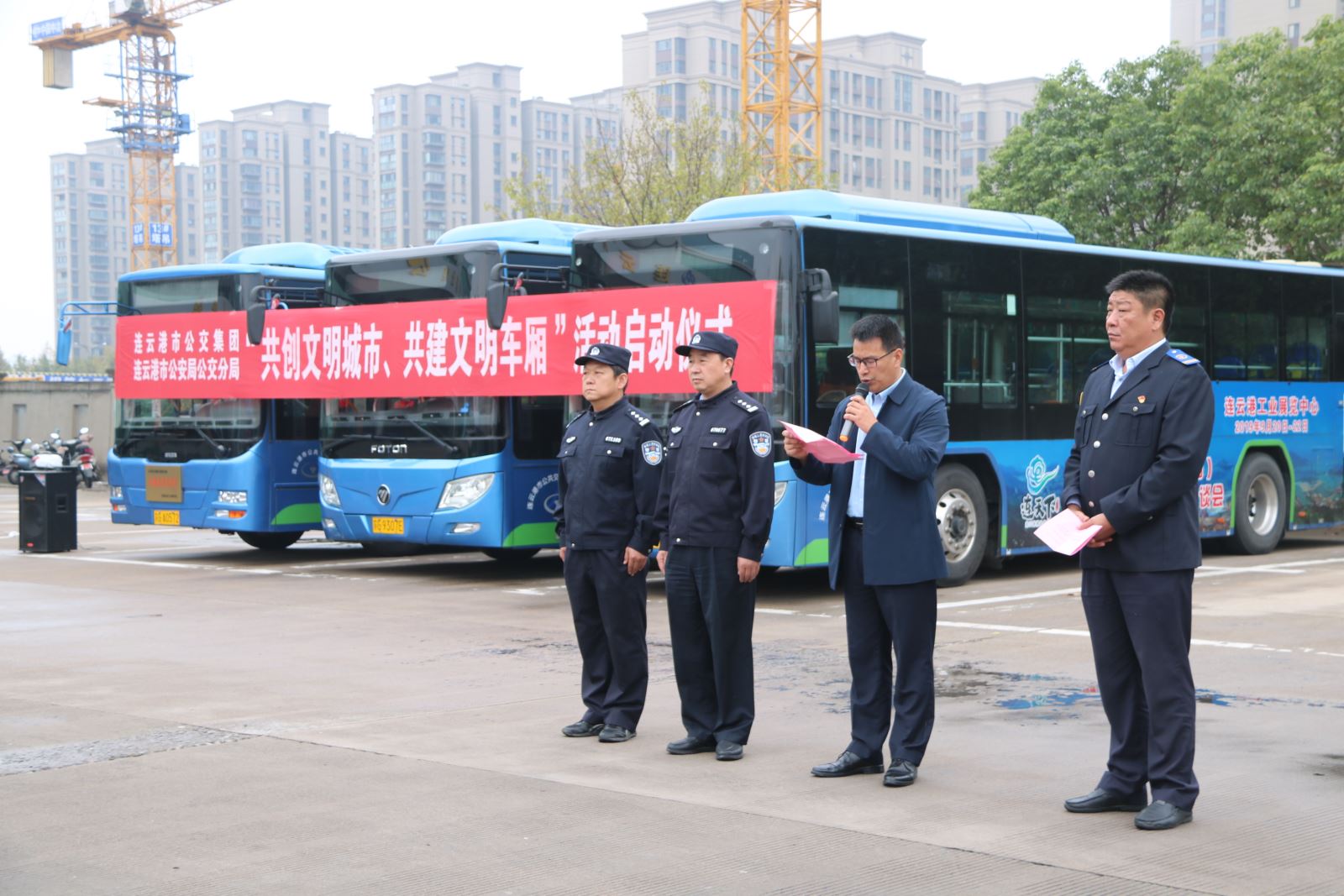 10月12日上午,市公交集團、市公安局公交分局聯合舉辦的“共創文明城市、共建文明車廂”活動啟動儀式在公交集團新華公交總站隆重舉行,市公安局公交分局局長高文勝,市公安局公交分局政委丁驍,市公交集團黨委書記、總經理周文君,公交集團副總經理羅軍等相關人員參加了啟動儀式。