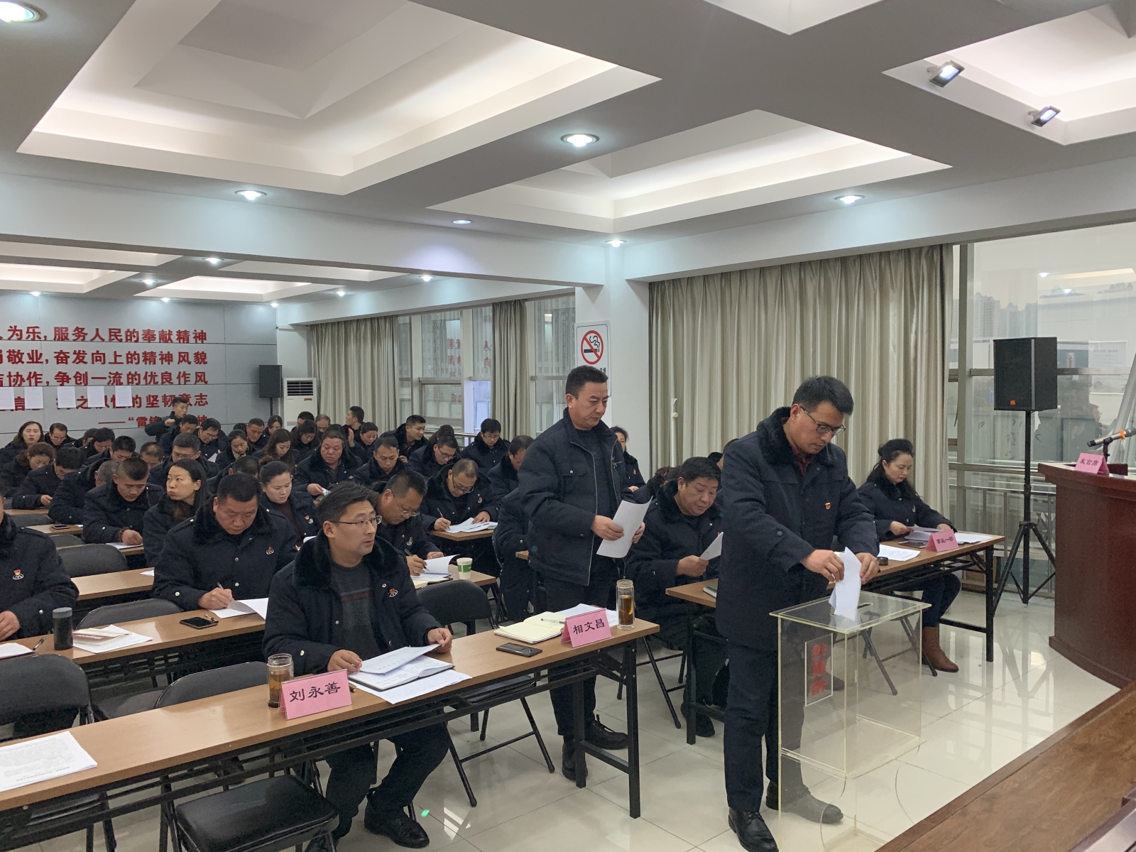 會議最后組織了民主測評,與會人員對領導班子及領導干部述職、書記抓黨建、述廉等方面進行了現場測評。