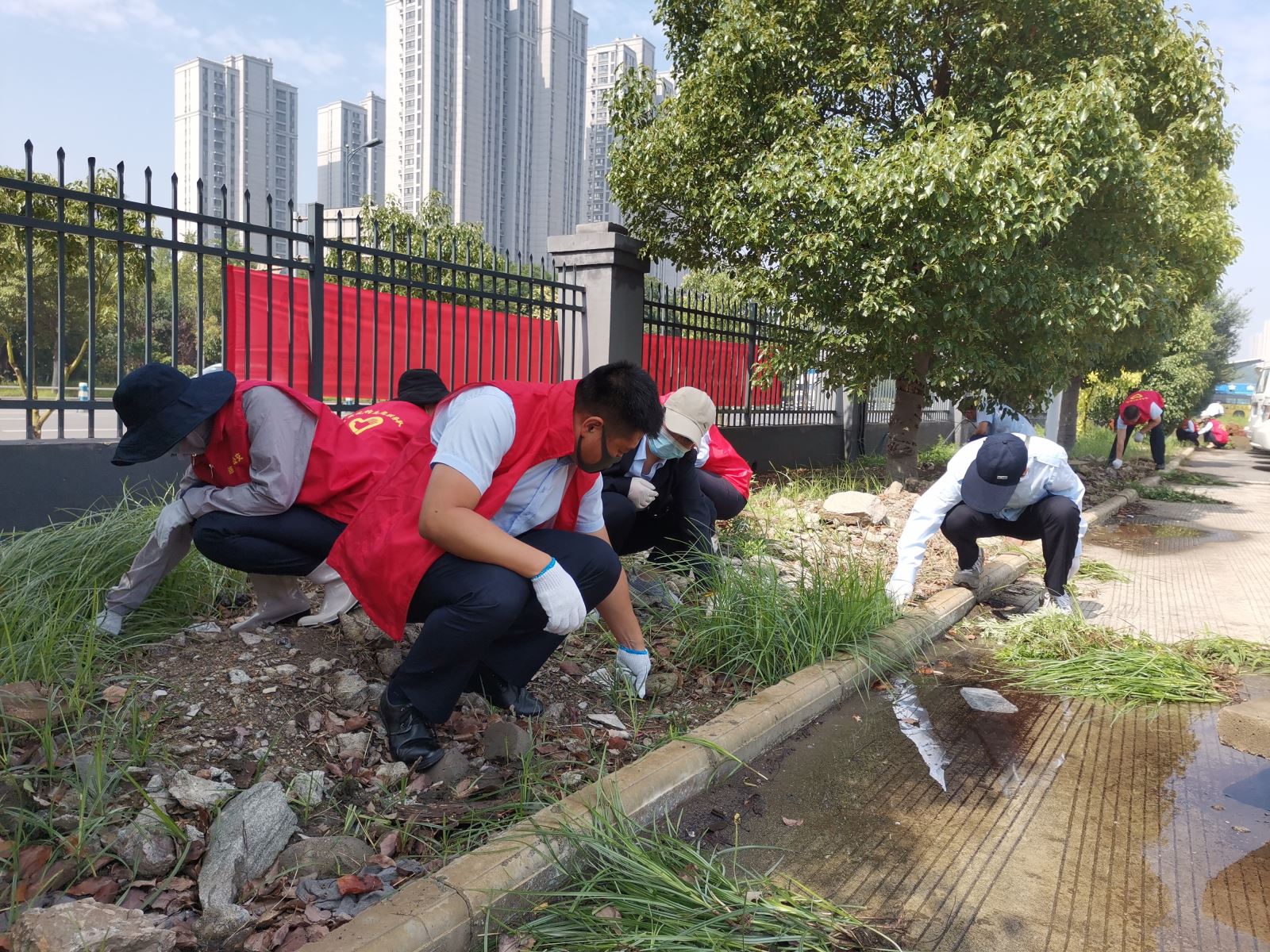 活動中,大家爭先恐后,搶在前,干在前,有的用鐵鏟鏟草,有的用手直接拔,有的用鐮刀割,有的往外清理……,雖然天氣不是太熱,但是大家干得汗流浹背,加之土地濕潤,蚊蟲較多,大家克服蚊蟲叮咬的困難,發揚了不怕臟、不言苦與累的優良作風。經過近三個小時的辛勤勞動,綠化帶的雜草、雜物不見了,呈現在大家眼前的是一個干凈整潔的環境。